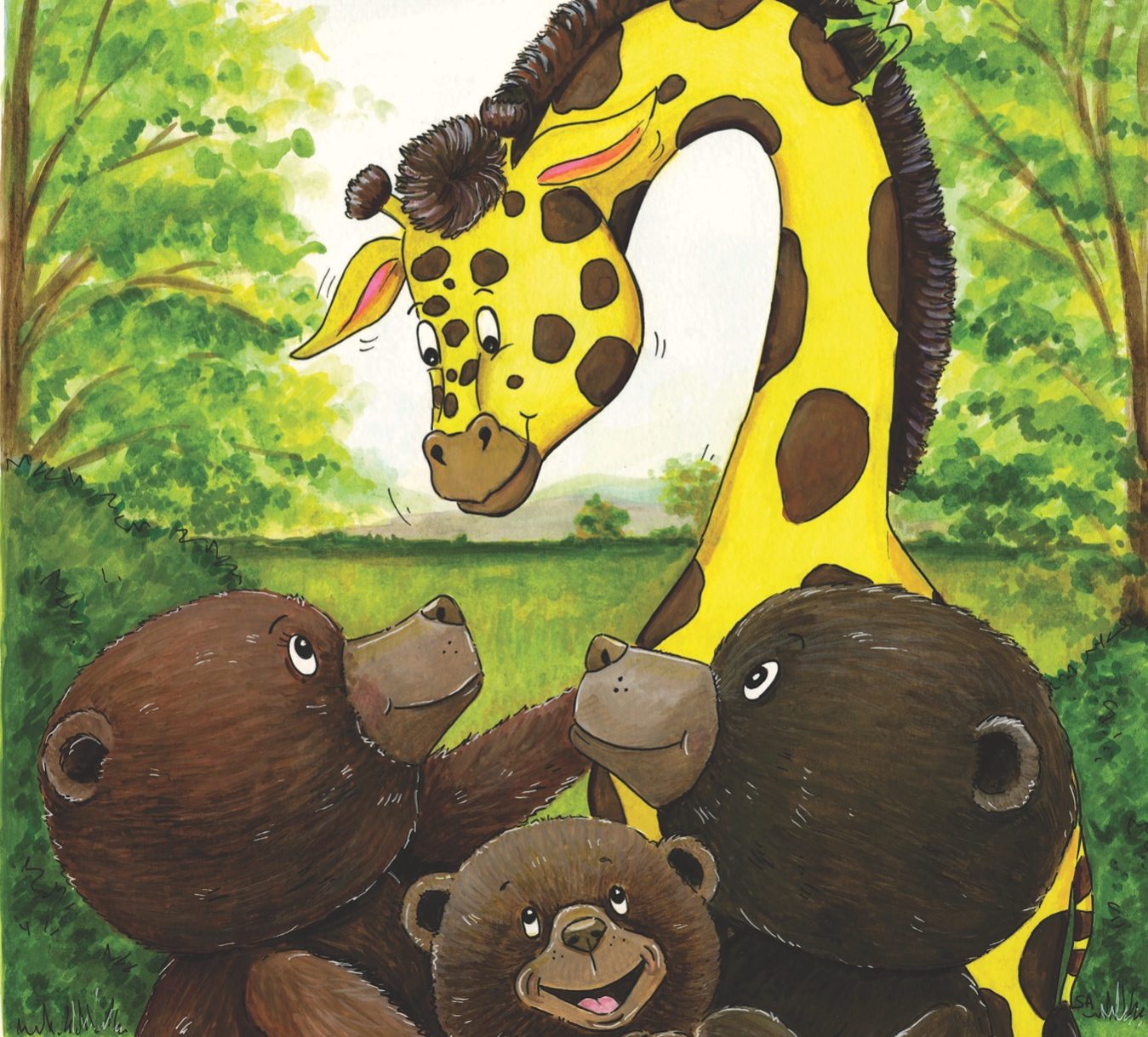 Giraffe Bear doesn’t fit in with normal life, he’s very different, but he is accepted none the less by his new family. I want to make sure children celebrate their differences and realise how special and unique they are, not feel they are cast out because they don’t fit in to the traditional ways of thinking or doing things.